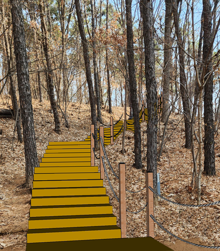 숲길과 놀이·휴게공간의 안전성을 높이고 보행 접근성을 개선하여, 일상 속에서 자연을 편하게 즐길 수 있는 생활형 공원으로 정비한다. 구릉 지형에 데크길과 계단을 설치하여 온전히 즐기는 쾌적하고 감성적인 숲길 경험을 제공한다.