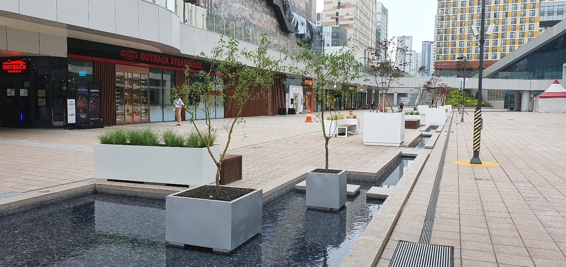광장 디자인 개선공사 · 초화식재 · 수경공사