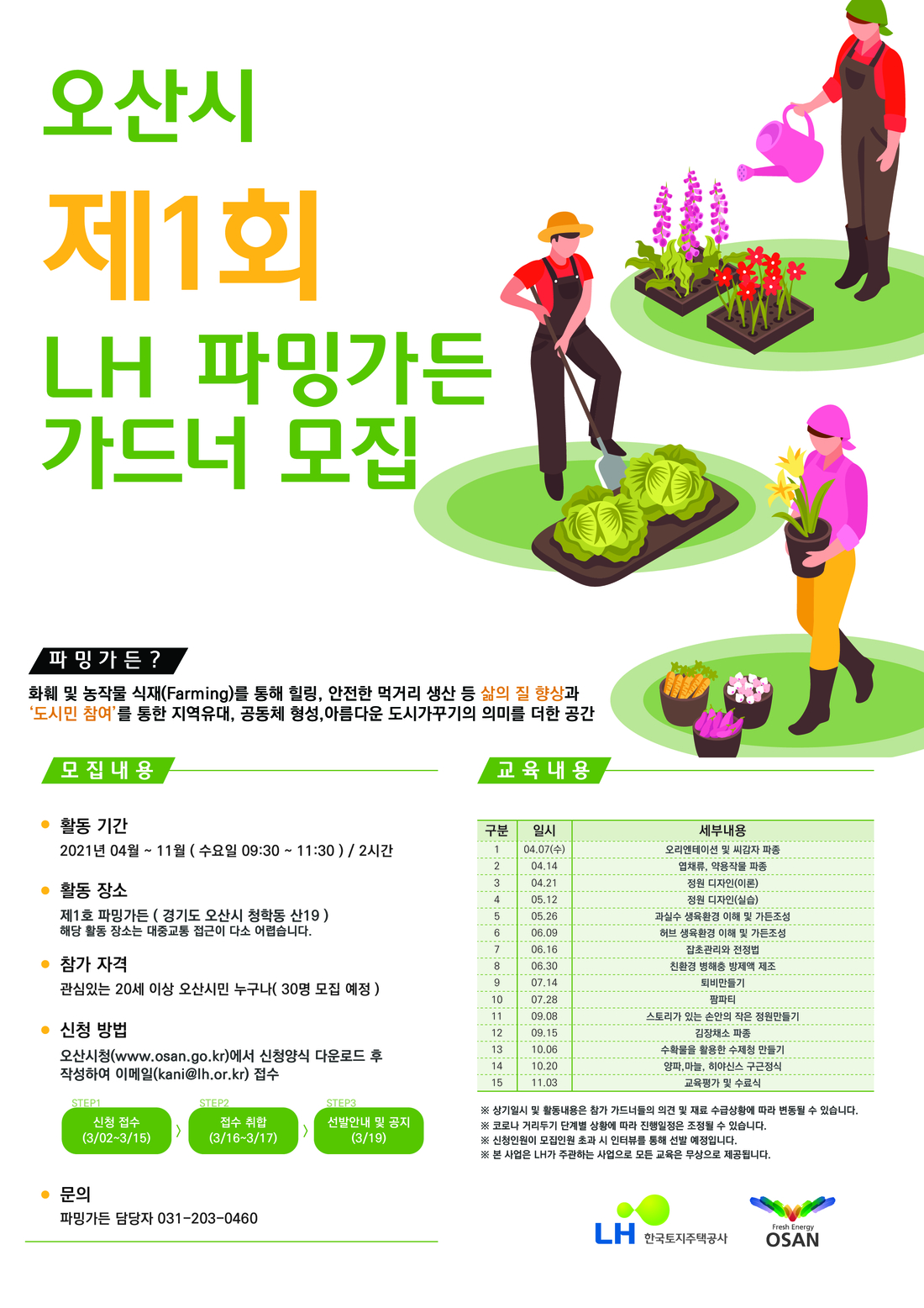 건강한 먹거리에 대한 관심, 주거지와 가까운 도시농업 공간의 요구를 충족시키며, 주민이 직접 파밍가든 조성과 관리에 참여하는 시민참여형 도시공원 조성을 목표로 정원 조성 및 식물 이론부터 텃밭 조성까지 정원과 텃밭에 대한 이해와 실습, 각종 행사를 통해 팜가든에 대해 알아갈 수 있는 프로그램.